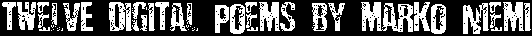 Marko Niemi (born 1974) is a digital/visual poet, translator, and editor of Nokturno, a web site for digital, visual, conceptual, and sound poetry (sort of Finnish UbuWeb). His works have recently appeared in Electronic Literature Collection, OEI, Otoliths, and vispo.com. He lives in Espoo, Finland, and maintains the digipo/vispo blog Nurotus.