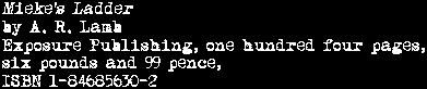 If Mieke's Ladder, A.R. Lamb's new collection of short fiction suffers for anything, it's for that old sad-bastard state of short fiction in today's literature market.