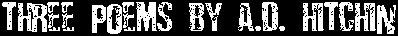A.D. Hitchin is a poetry and prose writer published extensively in small press and independent journals including BlazeVOX, Dogmatika and 3AM. You can read more at: myspace.com/AntonyHitchin.