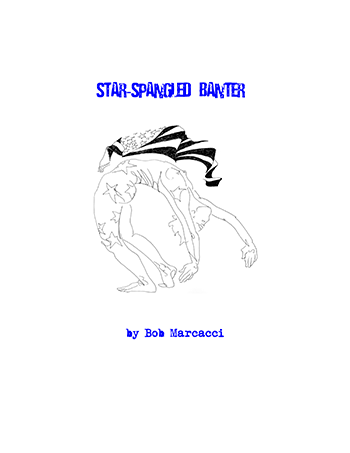 Unlikely Books is proud to present Star-Spangled Banter, by Bob Marcacci, as our newest poetry chapbook, with cover art by Nancy Victoria Davis originally found at Unlikely's July 4th issue. Star-Spangled Banter is an extroverted passage into the psychological and spirtual American Self; a discussion of boredom, lust, greed, fury, self-righteousness, and other peaceful motives in wartime. Laid out in a wild, spiraling projective verse, Star-Spangled Banter is a controlled and organized wail, a study of the agony of the destructive nature in every nation's soul.